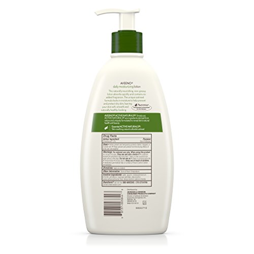 Aveeno Daily Moisturizing Lotion helps improve the health of your dry skin in one day. The formula contains Active Naturals Oatmeal, clinically shown to help moisturize and relieve dryness. This lotion replenishes moisture for softer, smoother, healthier-looking skin. Recommended by dermatologists, it is fragrance-free, non- greasy, non-comedogenic, and gentle enough for daily use.Feature