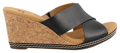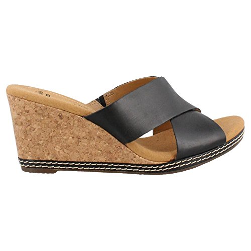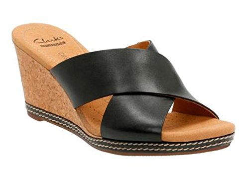 Studio : CLARKS Publisher : CLARKS Binding : Apparel Product Description Women's Clarks, Helio Swan High Heel Wedge Sandal This wedge is a look you?ll love and stay comfortable in all day long! Leather upper Slide on style for an easy on and off Fabric and manmade lining Cushion Soft footbed for all day comfort 3 inch wedge heel Rubber outsole. Heel Height of 3.00 inches 0