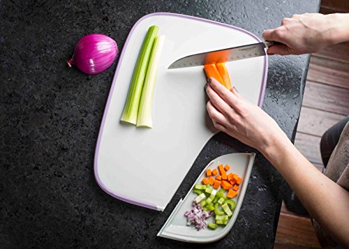 Other side of the board is flat with an expansive area to comfortably cut fruits, vegetables, herbs, and more