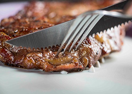 One side has innovative dual-action grip spikes which tenderize while keeping meat firmly in place for cutting