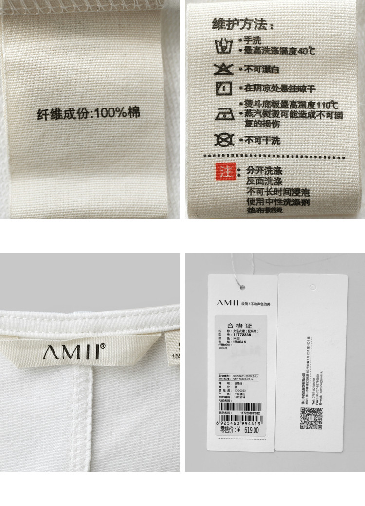 洗涤标准:不可浸泡不可干洗不可漂白40℃以下手洗110℃以下垫布熨烫悬挂晾干