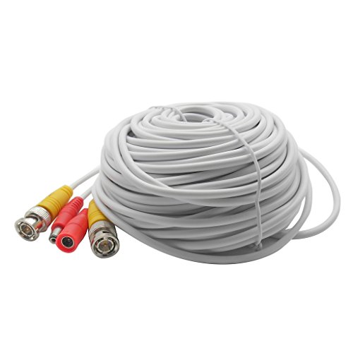 98Ft. White, Pre-made All-in-one BNC Video and Power Cable Wire with Connector DC 2.1mm for CCTV Surveillance Security Camera