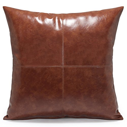 Acanva Decorative Accent Throw Pillow Faux Leather Cushion with Pillowcase Cover Sham and Insert Filling, Solid, Coral Brown
