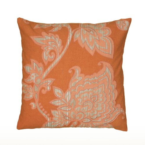 Rizzy Home T06534 Printed with Embroidery Details Decorative Pillow, 18 by 18-Inch, Orange