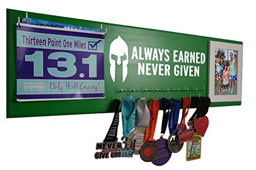 RunningontheWall Medal Hanger Medal Display Rack and Race Bibs "ALWAYS EARNED NEVER GIVEN" Running Bib with Picture Frame Design