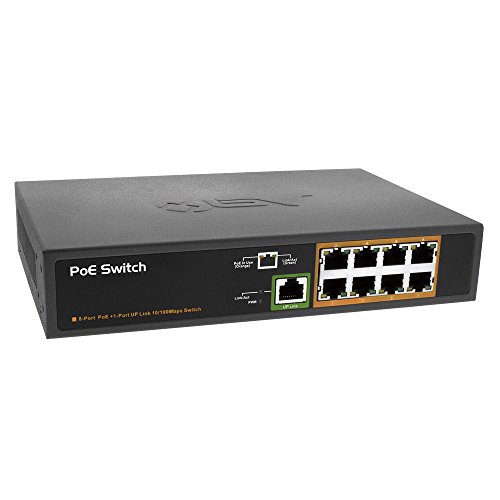 BV-Tech 8 Port PoE Unmanaged Switch + 1 Ethernet Uplink – 150W – 802.3af – POE-SW801
