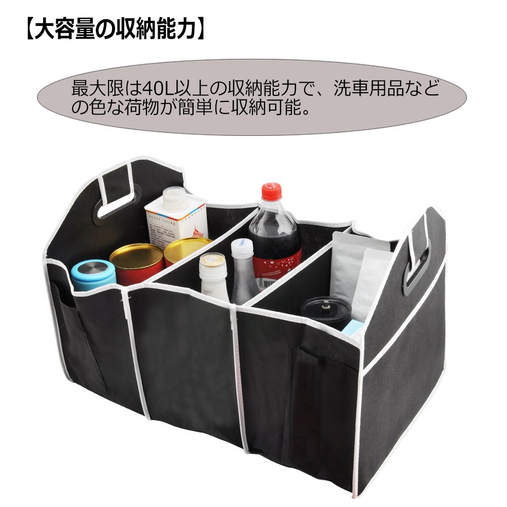 With maximum storage capacity of 40 L or more, color luggage such as car wash items can be easily stored.