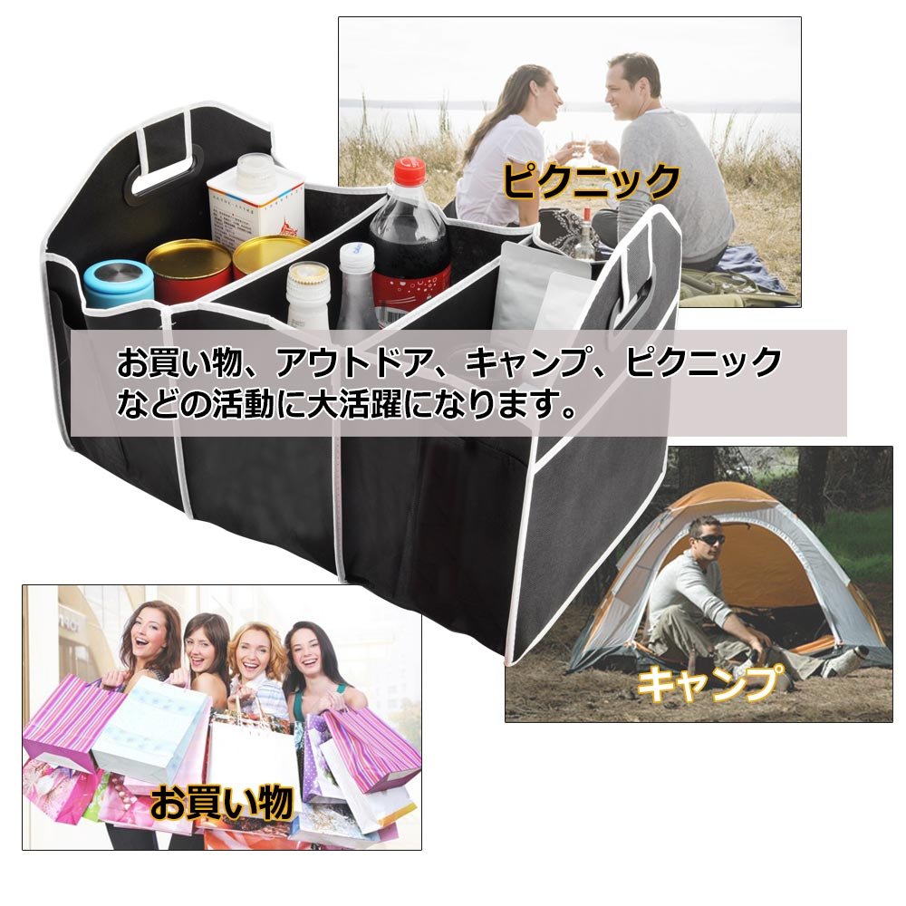 Automotive storage box will be a great success for activities such as shopping, outdoor, camping, picnicking.