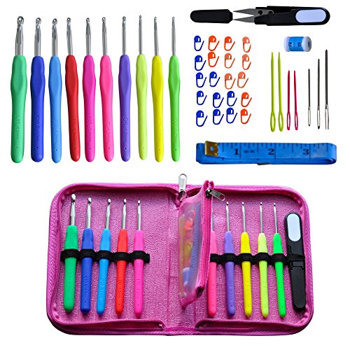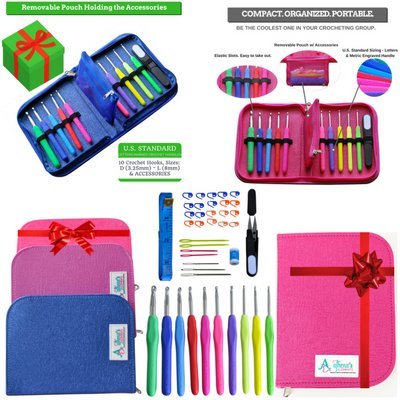 - EXCLUSIVE HOOKS & KITS. NO OTHER OFFERED US Standard Sizes Crochet Hooks in a Kit. Complete with all accessories: Large Eye Blunt Needles (Aluminum & Plastic) in different sizes, Stitch Markers (colors may vary), Crochet Counter, Tape Measure & Scissor. EXCELLENT QUALITY. BEST PRICE GUARANTEED.