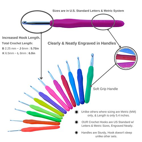 - UPDATED & IMPROVED: NEW & LONGER Crochet Hooks in US Standard Sizes (Letters), NOT MM (Number) sizes. These Crochet Hooks are marked with LETTERS & Numbers, as pictured. Do not mistake this Crochet Hooks to similar sets that are ONLY marked with MM sizes UK/Canada Standard. Understand the different sizes to avoid confusion.