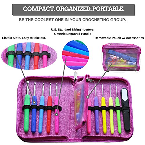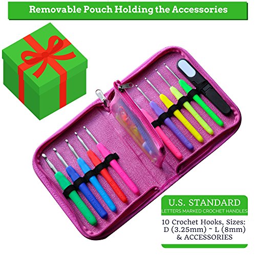 Crochet Hooks Set AMERICAN LETTER SIZES Ergonomic Handles D 3.25mm - L 8mm COMPLETE Crocheting KIT w/ Accessories in a STYLISH Crochet Needle Case Organizer - EXTRA Long Shaft for Super Chunky Yarns