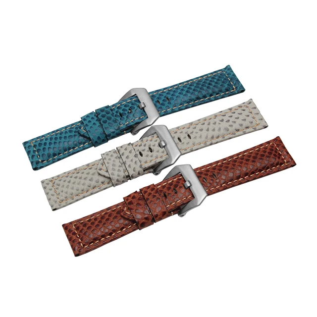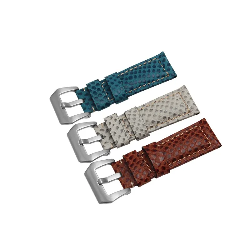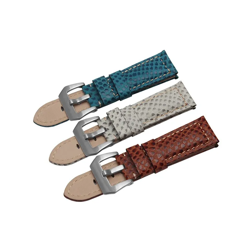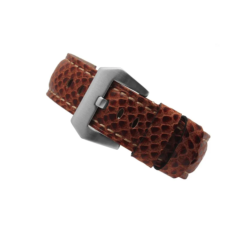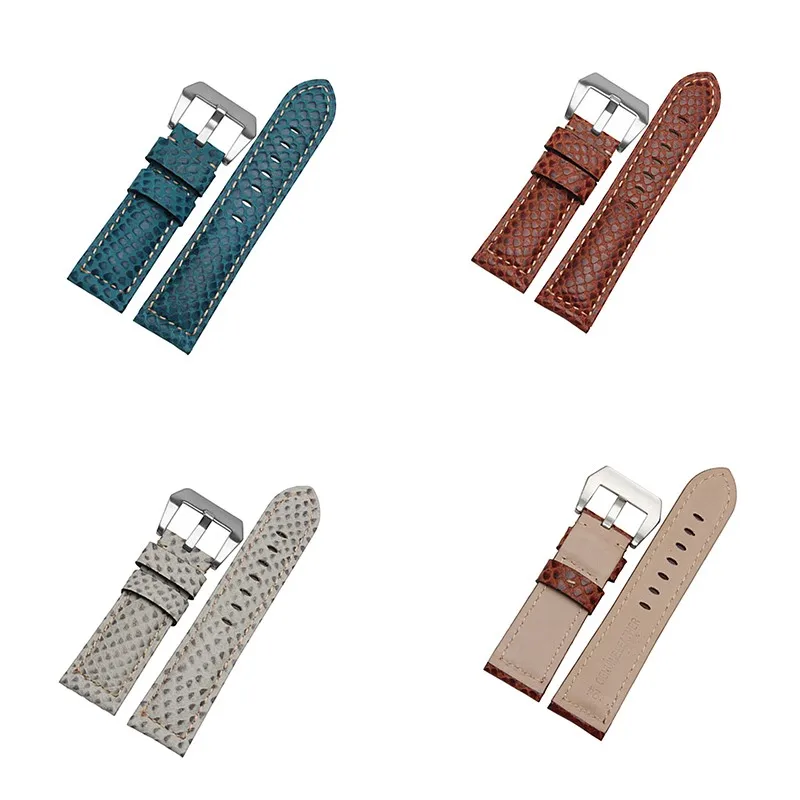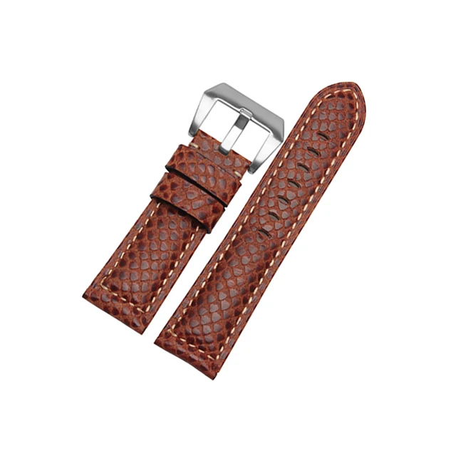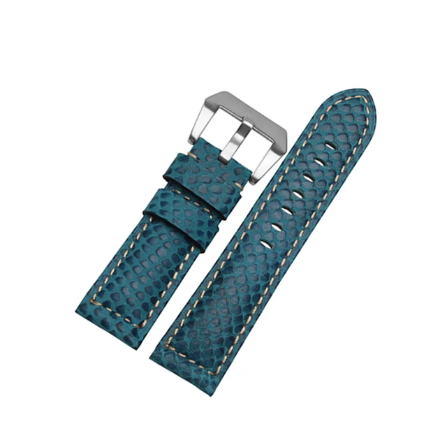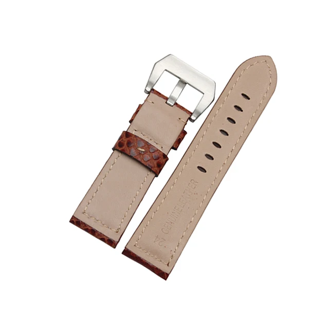| [해외] 24 미리메터 높은 품질의 소 가죽 시계 밴드 뱀 곡물 스테인레스 스틸 버클 스트랩 두꺼운 부드러운 손목 |