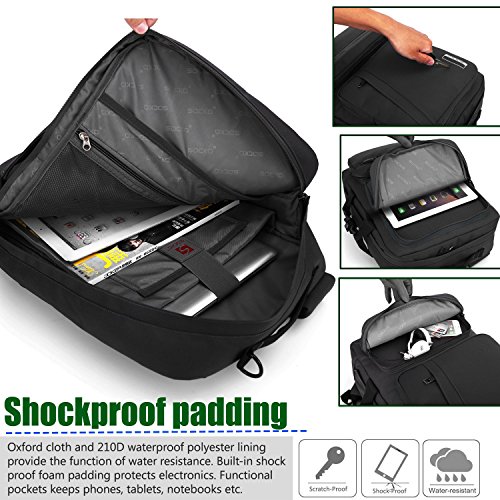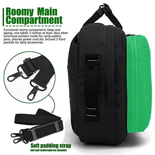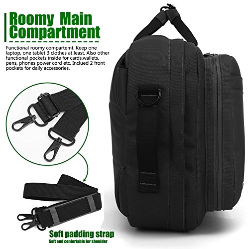 -. Feature : Demensions: 18.1 x 12.9 x 5.1 inches, fits up to 17.3 inch laptop , like Dell / Lenovo / Toshiba / HP/ Macbook etc. / Convertible Multipurpose Bag . This bag can convert to backpack, shoulder bag or briefcase, just you want it to be. So convenient for carrying. / Huge and reasonable space . Main compartment is designed for keeping laptop , Tablets , clothes , umbrella etc, two front pockets with zipper for keeping item like wallet, key, power bank, etc. Inside the main compartment, there are many small compartments for laptop power cord, books etc. / Function of Water resistance and shockproof. The durable Oxford Cloth and the 210D Waterproof Polyester Lining inside provide the function of water resistance and shock proof. Also the foam padding inside the bag further enhance the shock proof function. / Include removable shoulder strap and backpack strap. The shoulder strap is removable and adjustable, fit for every peoples. Also the backpack strap can be hidden in the back compartment when you don¡¯t need a backpack carrying style, still keep the bag in good shape.