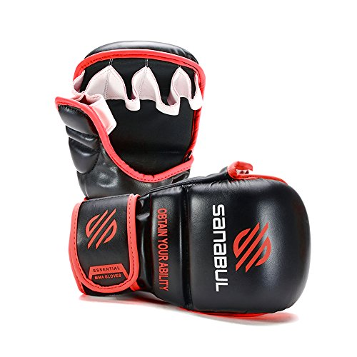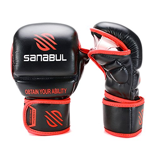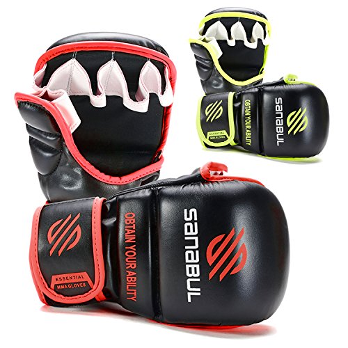 -. Binding : Misc. -. Brand : Sanabul -. Feature : One of the most versatile gloves you can find on the market. The Sanabul Essential 7oz MMA Sparring glove is great for mixed martial arts training when you want to seamlessly transition between grappling and striking without having to change gloves / Performance Engineered Leather construction. High quality and durable material is easier to clean and maintain / Durasoft Impact Protection Foam. Impact protection foam provides superb protection and softness to help prevent injury to your hands while training / Secure Velcro Closure System. Ensures a secure fit for training while making the gloves easy to put on or take off / Can be used for training in boxing , cardio kickboxing , muay thai , or MMA (Mixed Martial Arts) -. IsAutographed : 0 -. IsMemorabilia : 0 -. Label : Sanabul -. Manufacturer : Sanabul -. ProductGroup : Sports -. ProductTypeName : SPORTING_GOODS -. Publisher : Sanabul -. Studio : Sanabul -. Title : NEW ITEM Sanabul Essential 7 oz MMA Hybrid Sparring Gloves
