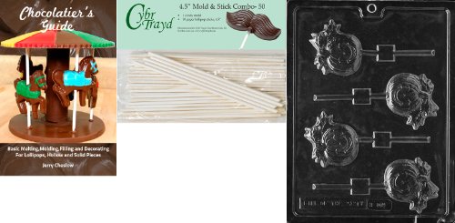 Cybrtrayd 45St50Bk-H109 'Pumpkin Lolly' Halloween Chocolate Candy Mold with 50 4.5-Inch Lollipop Sticks and Chocolatier's Guide