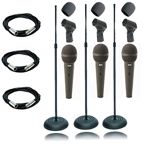 -. Title : On Stage 3 Pack MS7201B Round Base Microphone Stand With 3 CAD12 Handheld Dynamic Cardioid Microphones + 3 XLR Microphone Cables 20ft + 3 Foam Windscreen