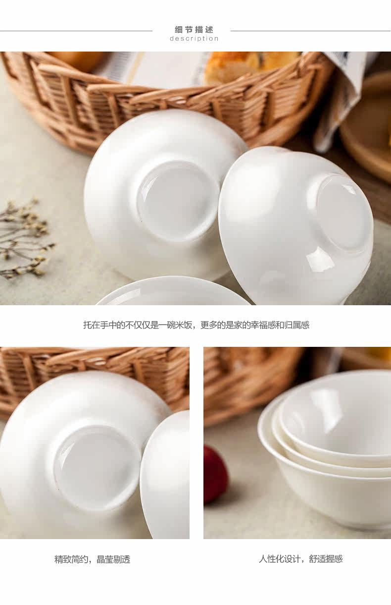 景德镇陶瓷纯白小中大号汤碗 中式骨瓷防烫米饭碗泡面碗骨瓷餐具