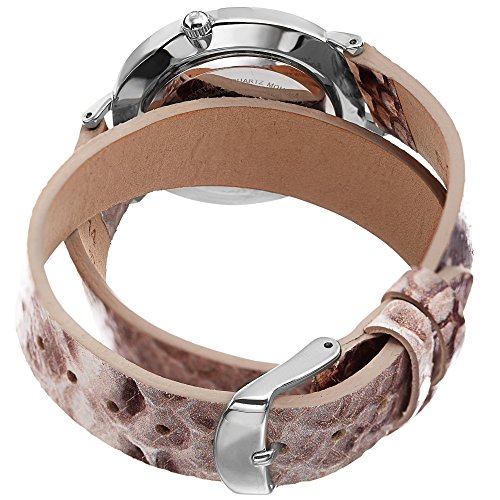 -. Title : Akribos XXIV Women's Quartz Silver-Tone Case with Silver Dial and Swarovski Crystal Hour Markers on Beige Snakeskin Embossed Genuine Leather Double Strap Watch AK923SSGY