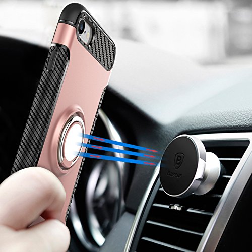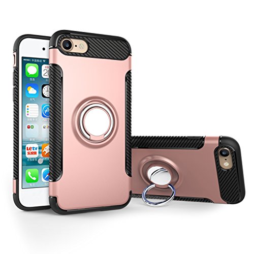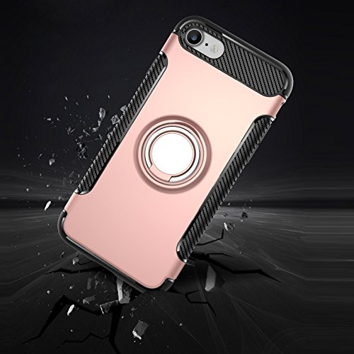 iPhone 7 Case,Ownest Armor Dual Layer 2 in 1 with Extreme Heavy Duty Protection and Finger Ring Holder Kickstand Fit Magnetic Car mount for Apple iPhone 7-Rose Gold