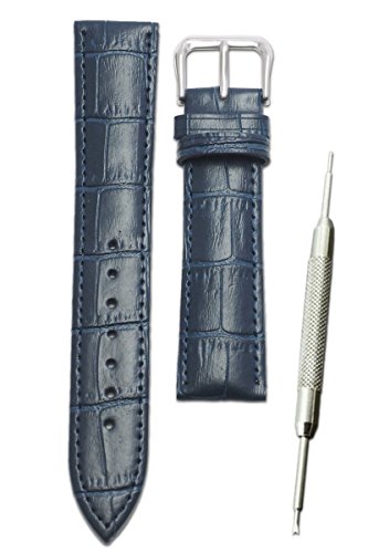 -. Title : 【本革製 クロコダイル型押し ネイビー 22mm】時計ベルト 時計バンド ストラップ 交換 腕時計【バネ棒外しセット】