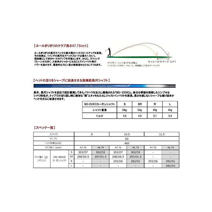 헤드 소재:페이스/6-4티타늄(티탄)(컵 페이스)고, 크라운/BF-11티타늄(티탄),바디/BF-11티타늄(티탄),넥/3-2티타늄(티탄)【4피스 복합 티타늄(티탄) 헤드 구조】