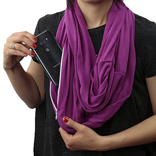 Binding : Apparel Product Description Add a little mix, fun, and sophistication to any ensemble this upcoming season! The women's infinity scarf with zipper pocket is one of the best selling fashion scarves on amazon today. This fashion scarf features a brightly colored and functional infinity scarf design, that's perfect for summer, fall, winter, and spring. Fashionable and functional, this scarf features a hidden zipper pocket along the seams for lightweight storage purposes to hold all your travel items like your smartphone, passport, money, cash, coin purse, keys, or wallet, when you're on the go! These scarves make the perfect gift idea for Women, Ladies, Girls, Teens, Children, Wife, Mom, Daughter, Girlfriend, or Her. This fashion scarf is sure to be the talk of the town at the office, girls night out, or your next party. The lightweight, trendy, design of this infinity scarf is the perfect circle scarf for your neck and most importantly comfort. Most importantly buying this scarf from the official Pop Fashion Store will offer you 100% MONEY-BACK GUARANTEE. Shop with confidence at the Pop Fashion Amazon Store as we always offers the best deals, discounts, sales, and prices on all our amazon scarves everyday with FREE SHIPPING via Amazon Prime. This Scarf is brought to you by the official Pop Fashion Store, a leader in affordable designer inspired fashion, scarves, infinity scarves, accessories, and clothing. Our team of dedicated customer advocates work around the clock to ensure that every customer is happy shopping at Pop Fashion. 0