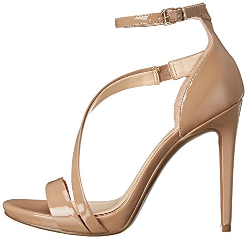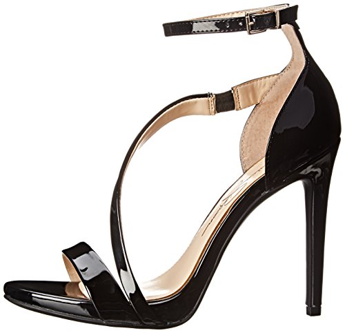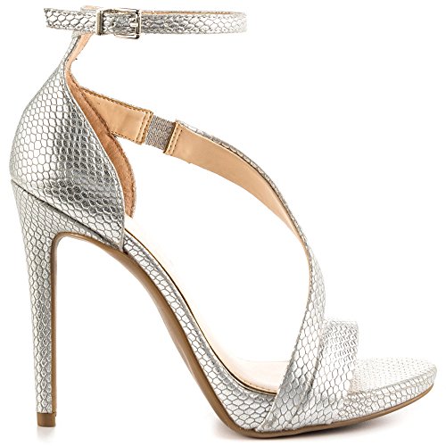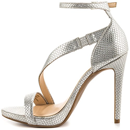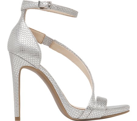 - Feature : Glamorous dress sandal featuring asymmetric strap across vamp and covered stiletto heel / Wrap-around adjustable ankle strap with buckle closure