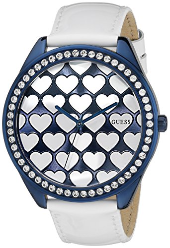 -. Title : GUESS Women's U0535L2 Iconic Blue & White Dazzling Hearts Over-Sized Watch