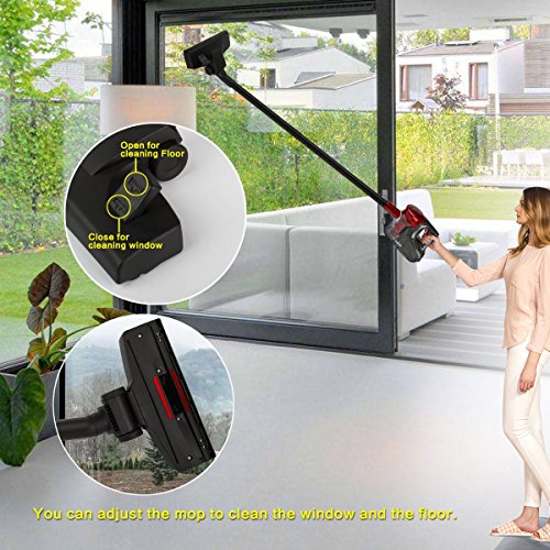 6-in-1 Cordless Vacuum Accessories: We put the Six vacuum accessories, the Floor mop to vacuum the floor and window's dust, the small short tube is to vacuum the dead corner, the two brush is to vacuum the big corner and wool fabric, The two straight extended tube to vacuum the deep garbage.