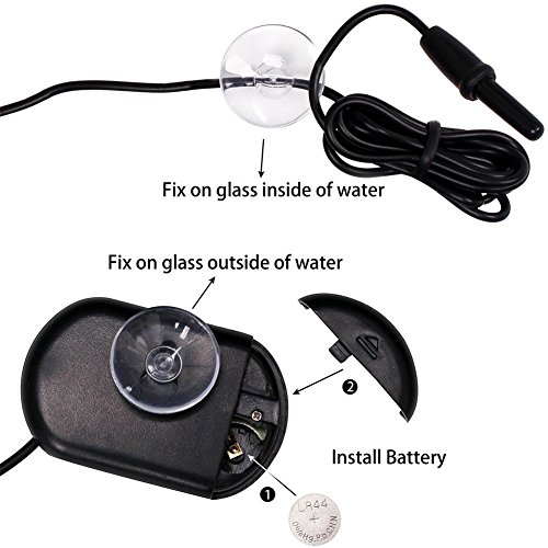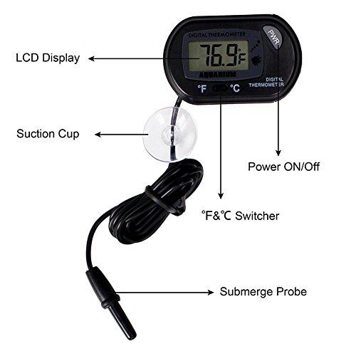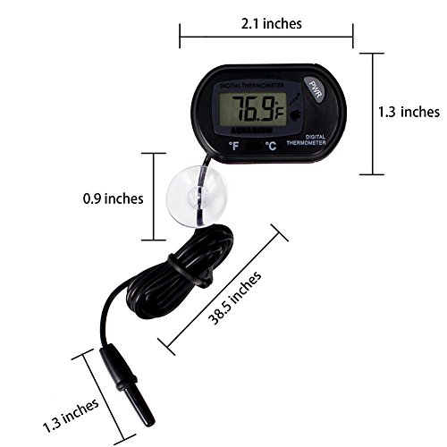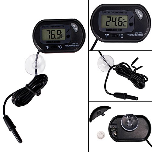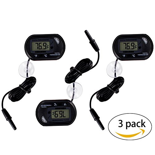 CoZroom LCD Digital Aquarium Thermometer for Fish Tank Water Vivarium Temperature Sensor, Pack of 3, Black
