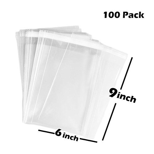 TripodGo 100 Pcs 6x9 Self-sealing Clear Cellophane Bags, Resealable Cello, for Snake Bakery Candle Soap Cookie T-shirt Bags