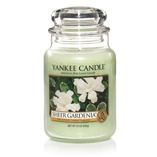 -. Binding : Kitchen -. Brand : Yankee Candle Company -. Color : Green -. Department : unisex-adult -. EAN : 0609032462246 -. Feature : Premium-grade paraffin wax that delivers a clean, consistent burn. / Premium quality ingredients with natural essential oils create distinctive true-to-life scents / Lab-tested to ensure the appropriate strength and consistency. 100% recyclable and accepted by most recycling centers. / Lead-free, 100% natural fibers, and hand straightened to ensure it is centered for the best burn possible. / 4" x 6.6" -. IsAutographed : 0 -. Label : Yankee Candle Company -. Manufacturer : Yankee Candle Company -. Model : 1066928 -. MPN : 1066928 -. NumberOfItems : 1 -. PackageQuantity : 1 -. PartNumber : 1066928 -. ProductGroup : Home -. ProductTypeName : HOME -. Publisher : Yankee Candle Company -. Size : 22oz. -. Studio : Yankee Candle Company -. Title : Yankee Candle Sheer Gardenia Large Jar -. UPC : 609032462246