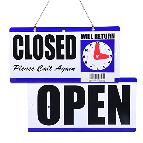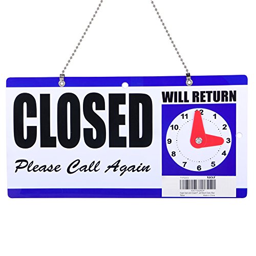 Eagle Open and Closed Plastic Hanging Sign With "Will Return" Clock, 6 X 11.5 Inches