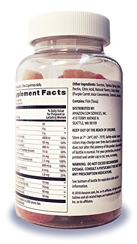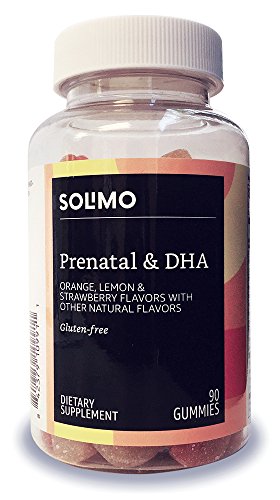 Solimo Prenatal & DHA gummies feature orange, lemon, and strawberry flavors with other natural flavors. They're gluten-free. Adults - chew two daily. This product contains fish.
