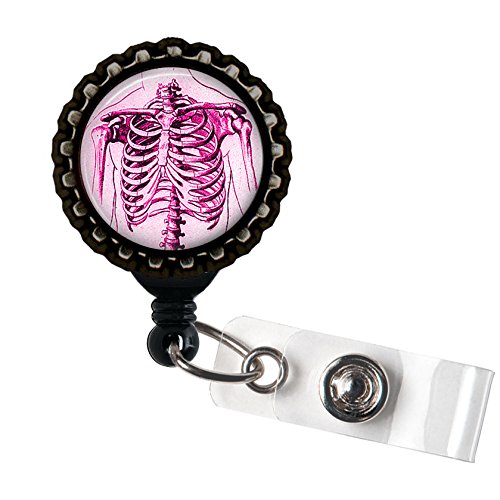 Anatomical Ribcage - Black and Pink Retractable Badge Reel ID Holder