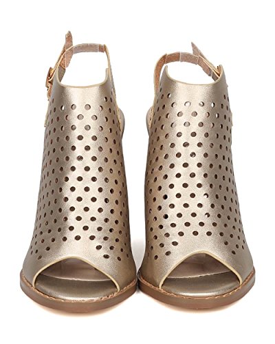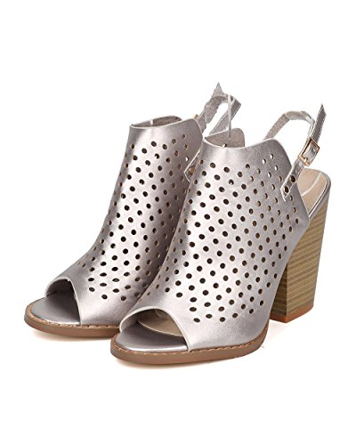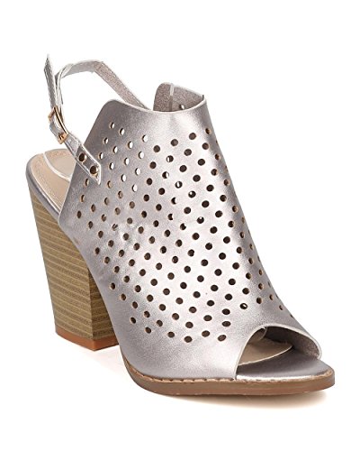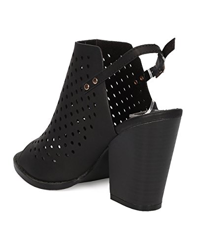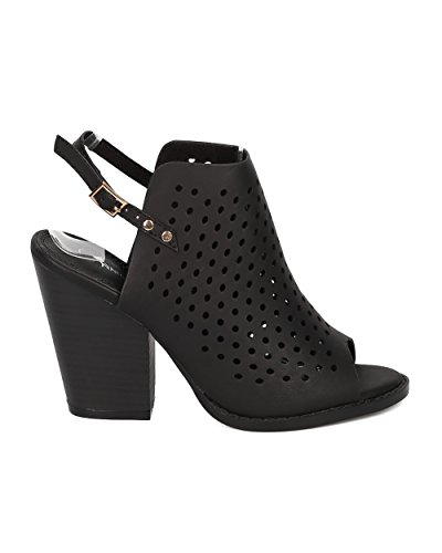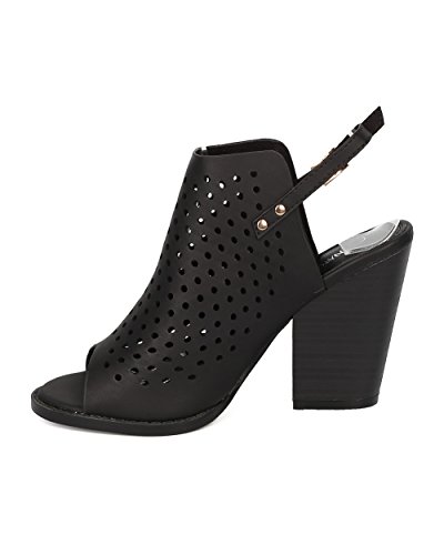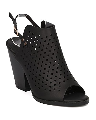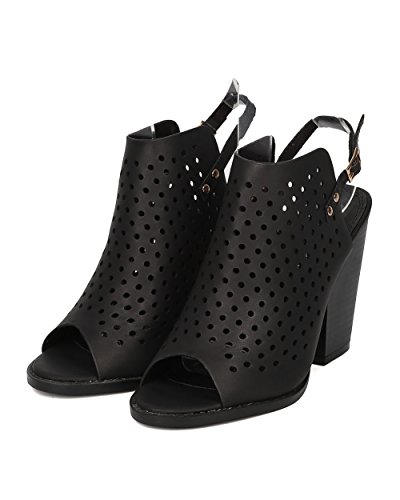 Product Description These leatherette mules are made with a peep toe, perforated details throughout and single sole. Also made with a chunky heel and slingback strap with adjustable buckle closure. 0