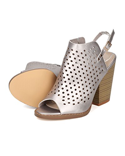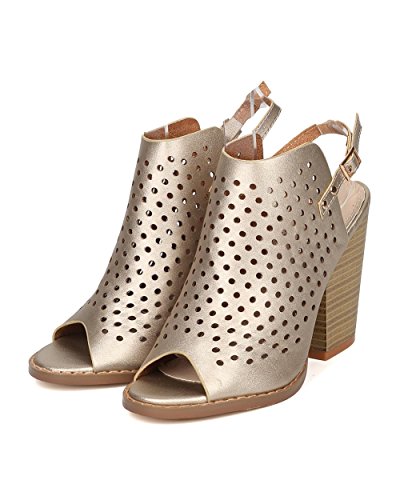 Women Perforated Chunky Heel - Dressy, Trendy, Casual - Slingback Heel Mule - GF56 By Nature Breeze