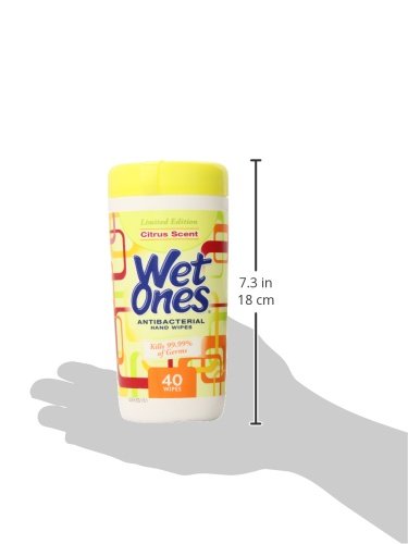 Wet Ones Antibacterial Hand Wipes kill 99.99% of germs, helping prevent the spread of bacteria. They remove dirt, providing a better clean than hand sanitizers. They're ideal for quick clean-ups after contact with germs, sticky foods, greasy dirt, and everyday messes. Wet Ones Antibacterial Hand Wipes are formulated to be tough on dirt and germs, yet gentle on skin. Help keep your family healthy and clean anytime and anywhere, when soap and water are not available. Canister fits 3 inch car cup holder or larger. Note: the fragrance of this product has changed. 40 Wipes - Antibacterial/Citrus Scent