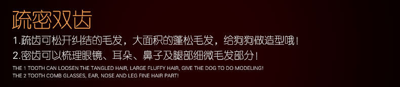 A fine tooth comb pet hair knot; ultra wide comb, can direct coat bottom,more suitable for the double coat or shaggy dog.