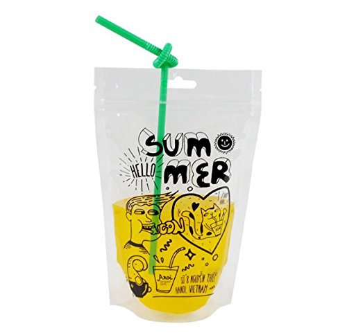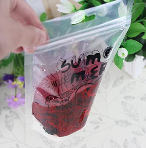 Stand Up Reclosable Zipper Drink Pouches, Disposable Clear Drinking Bags for Juice, Cocktail, Ice Pop Bags Marker, 15" Bottom Gusset, Pack of 50