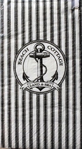 India Ink GUEST TOWELS Buffet Napkins Bathroom 16 count BEACH COTTAGE Anchor White Black