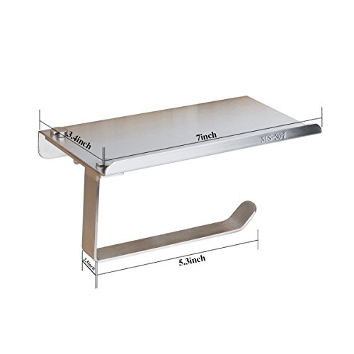- MULTIPLE USE SHELF - Shelf size is 7*3.5*4inch which is great for mobile phone storage shelf and toilet paper rolls hanger, fits most of big paper rolls, like Costco large rolls, Kirkland 4.5" x 4", some jumbo rolls, EXCLUDE mega rolls or any other extra one. Please take measurements of your toilet paper roll correctly before buying it.