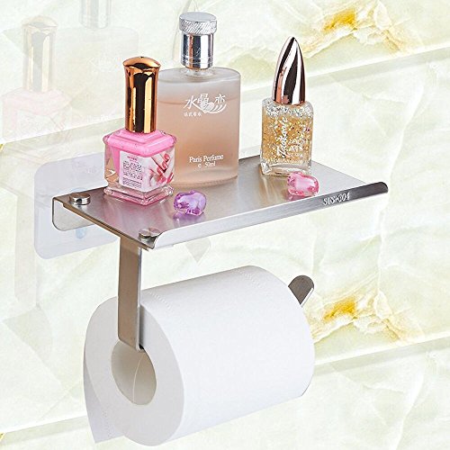 Toilet Paper Holder with Adhesive Hook,Yoyokit No Drilling SUS304 Stainless Steel Toilet Tissue Roll Holder with Shelf For Bathroom