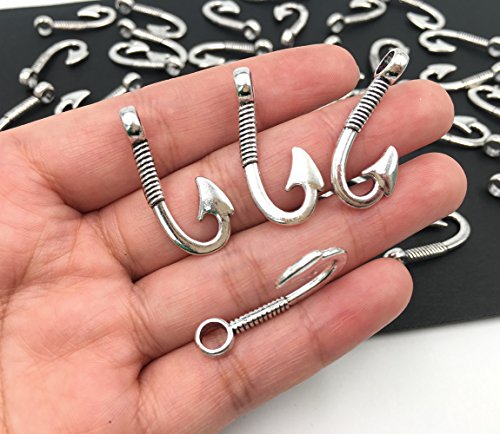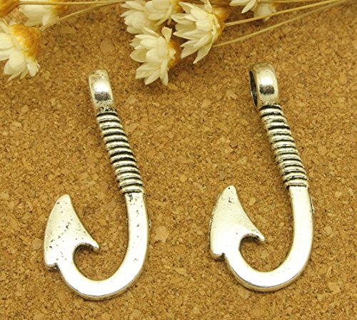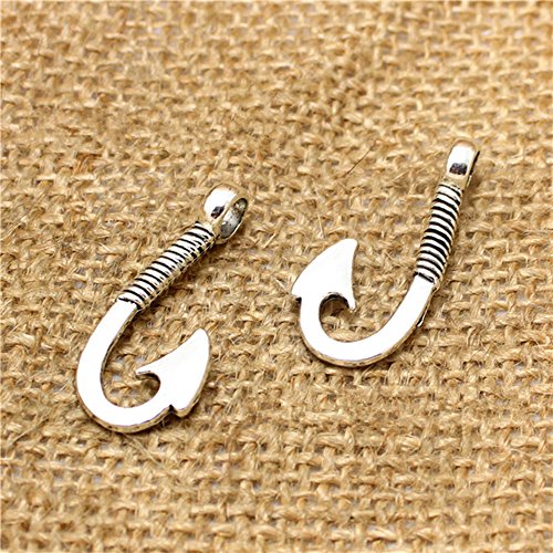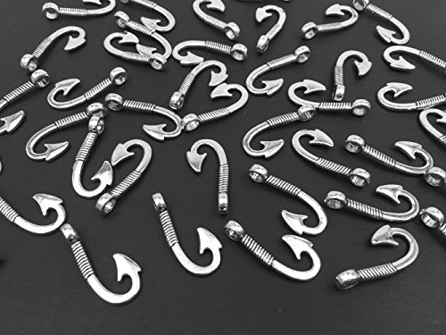 40pcs Fishhook Charm pendant for DIY Crafting jewelry Making Findings Accessories By Alimitopia(Antique Silver)