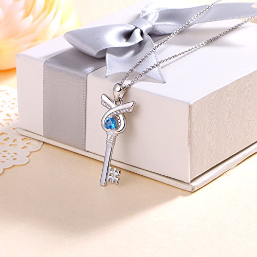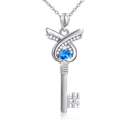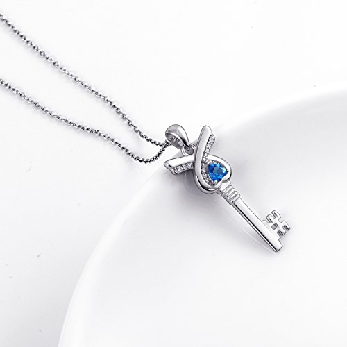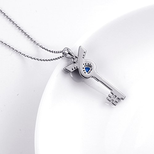-. Title : 925 Sterling Silver Blue Heart Angel Wings Key Shaped Pendant Necklace, Rolo Chain 18"
