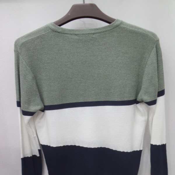 배색이 멋지게 들어간 라운드 니트.봄,가을 캐주얼하게 입을수있으며 부드럽고 구김없는 소재로 편하게 입을수있는