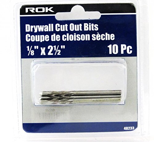 - Feature : Each bit is 1/8" [3.2mm] shank thickness x 2-1/2" [6.35 cm] long / Drill bits are designed to cut irregular cut outs on drywall (gypsum Board) / Can also be used on thin plywood (less than 1/4" thickness) / Can be used as replacement bits for the dremel 565 cutting guide / Fits all rotary tool brands such as Dremel / Black & Decker / ROK
