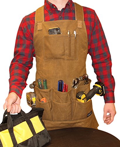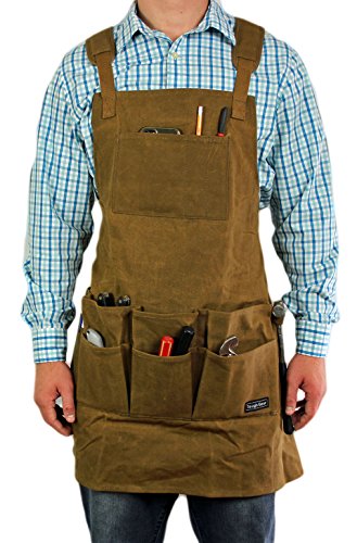 Smith Forge (Brown) Heavy Duty Waxed Canvas Work-Shop-Tool Apron 11Pockets-Adjust SM-XXL