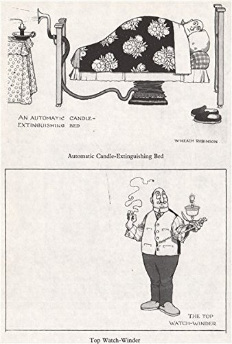-. Title : HEATH ROBINSON. Automatic Candle-Extinguishing bed; Top Watch-Winder - 1973 - old P.R.Int - antique P.R.Int - vintage P.R.Int - Heath Robinson art P.R.Ints