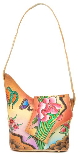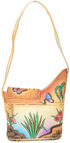 ZIMBELMANN SARAH Genuine Nappa Leather Hand-painted Cross Body Flap Shoulder Bag